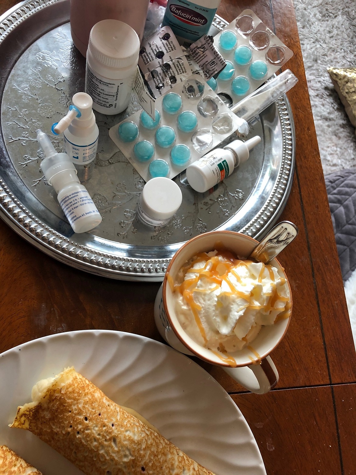 1.) Se till att ha enkel mat hemma. Du har definitivt inte tid att laga mat (inte om du ska försöka få ihop några jobbtimmar). Färdigköpt pannkaka och sylt i klämflaska är vår räddning. Färdiga smoothies/klämmisar och yoghurtar för mellis.